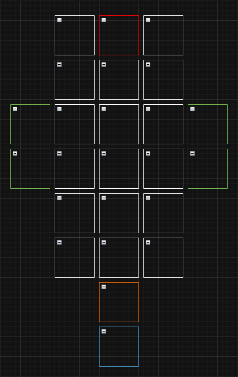 Each white box represents a randomly generated mine segment. This means that the mine layout is different every time you enter, but the points of interest still have the same relative positioning.