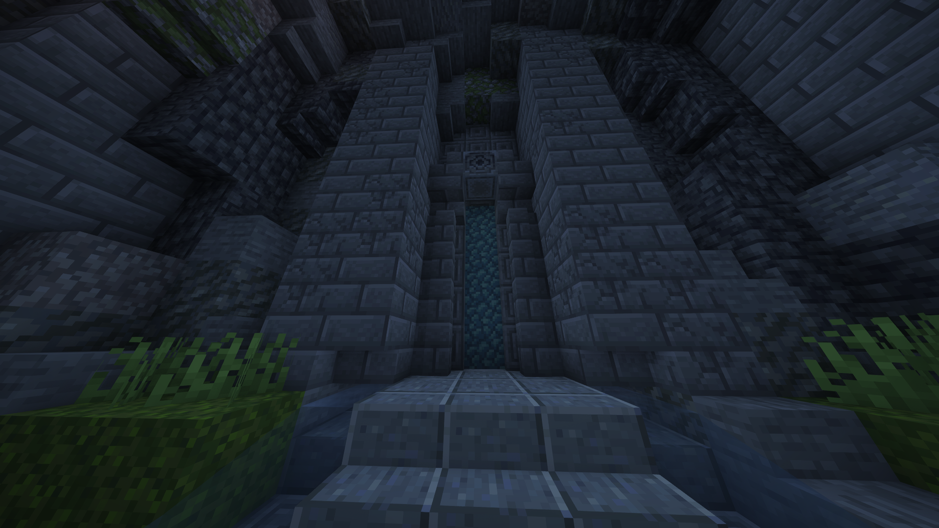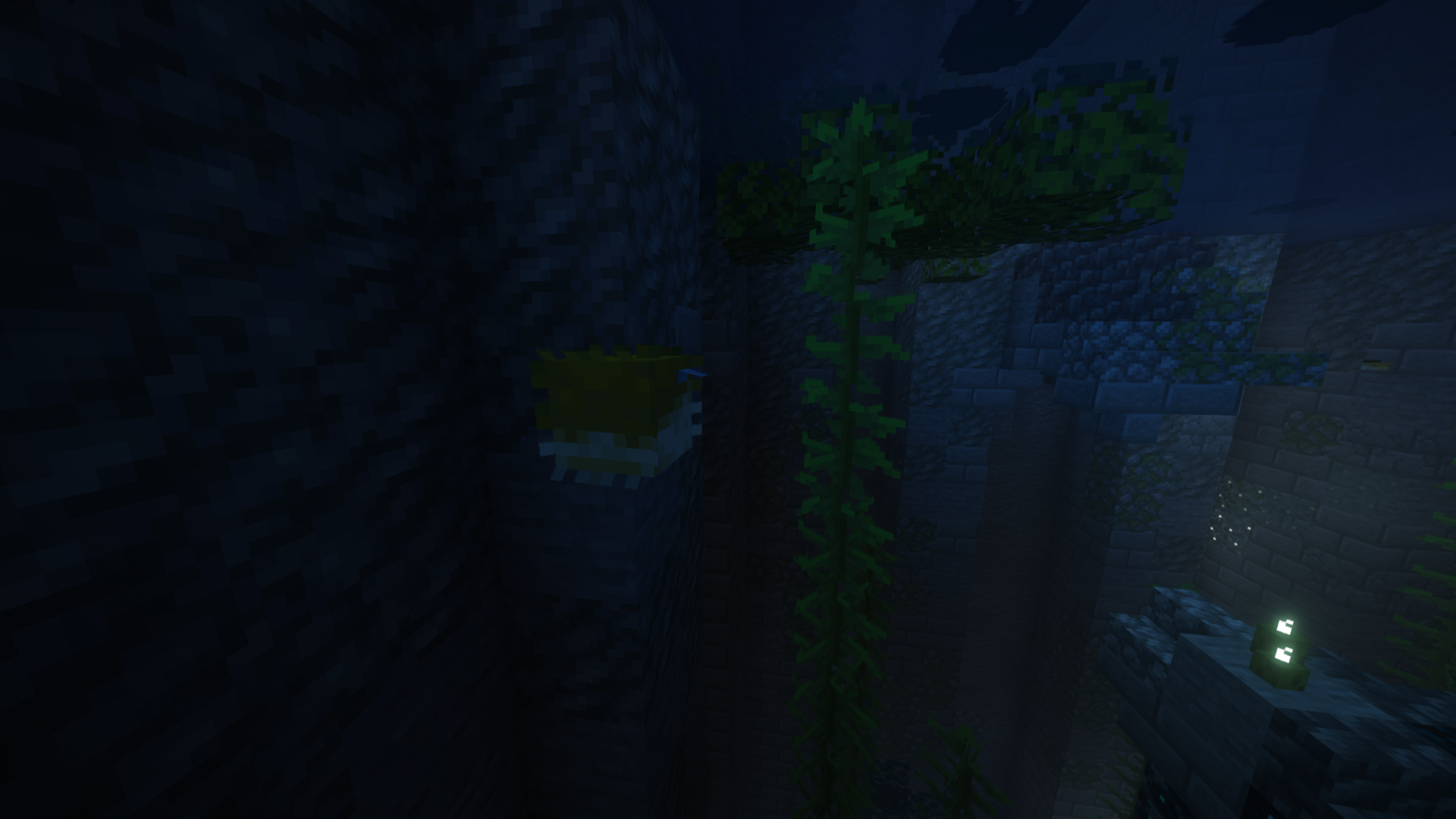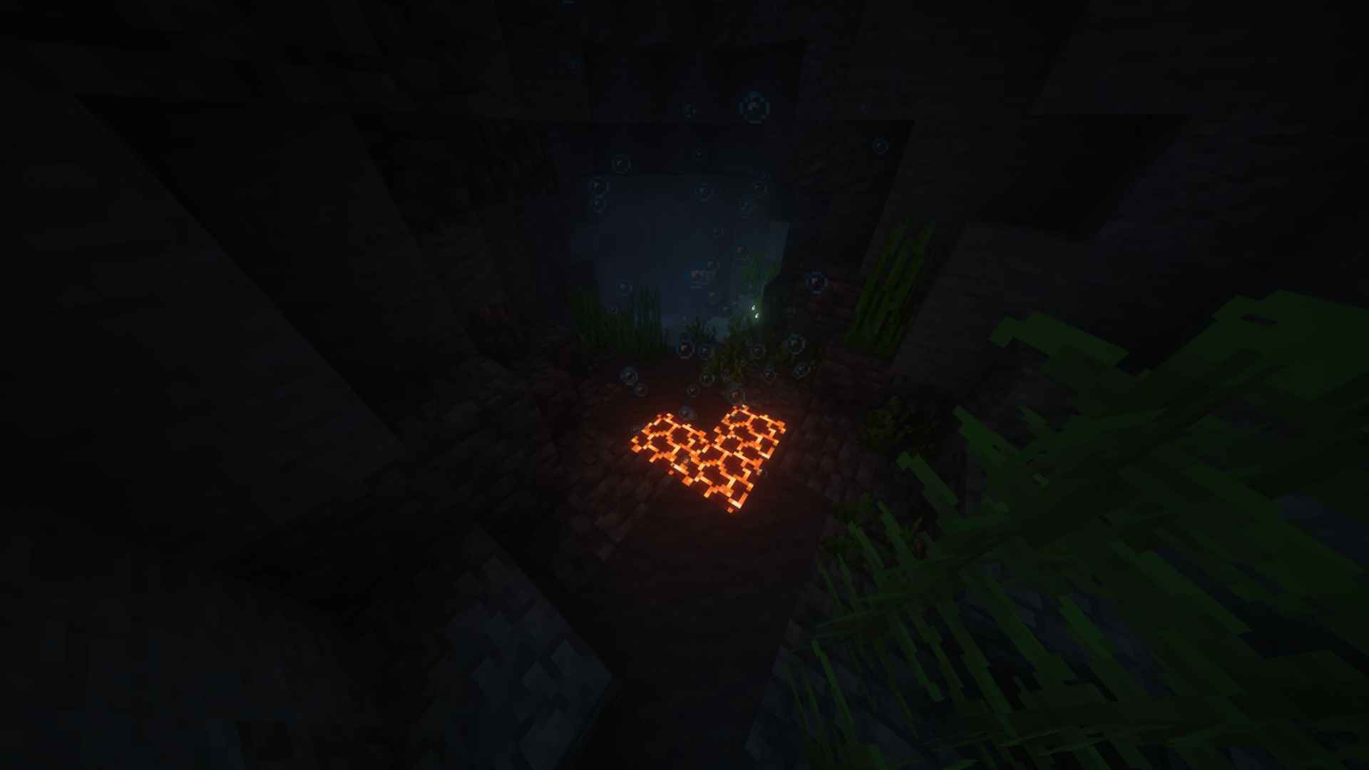 Once jumping into the well and triggering the tripwire, you will be teleported to a water area. Here, you need to swim through a series of underwater tunnels. Part 1 is straight, with magma blocks on the bottom for air (crouch on them (info for if your under 3)). Swim past the pufferfish where you will eventually surface into a little alcove.