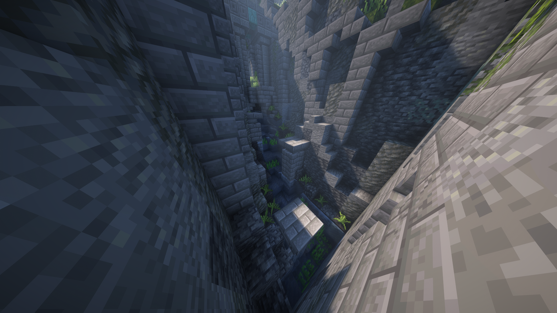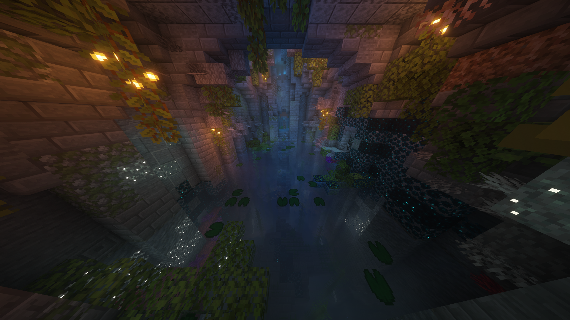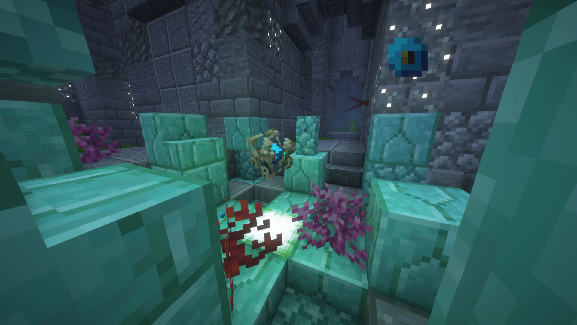 Once jumping into the well and triggering the tripwire, you will be teleported to a water area. Here, you need to swim through a series of underwater tunnels. Part 1 is straight, with magma blocks on the bottom for air (crouch on them (info for if your under 3)). Swim past the pufferfish where you will eventually surface into a little alcove.