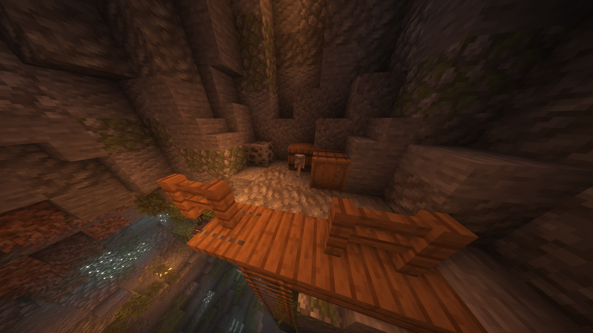 Once you arrive at the pickaxe cave, you will have to do simple parkour to get to the top, obtaining the pickaxe. There is a drowned spawner, so be careful. There are vines that you climb to start the parkour. Watch the video below to see how to complete the parkour.